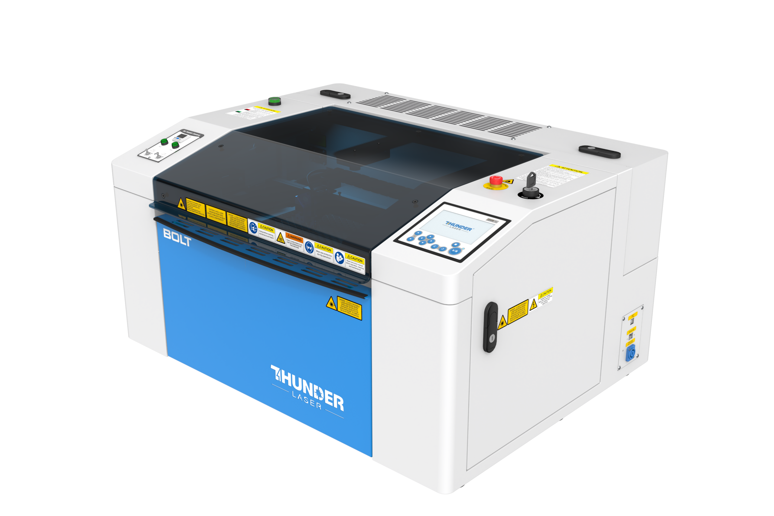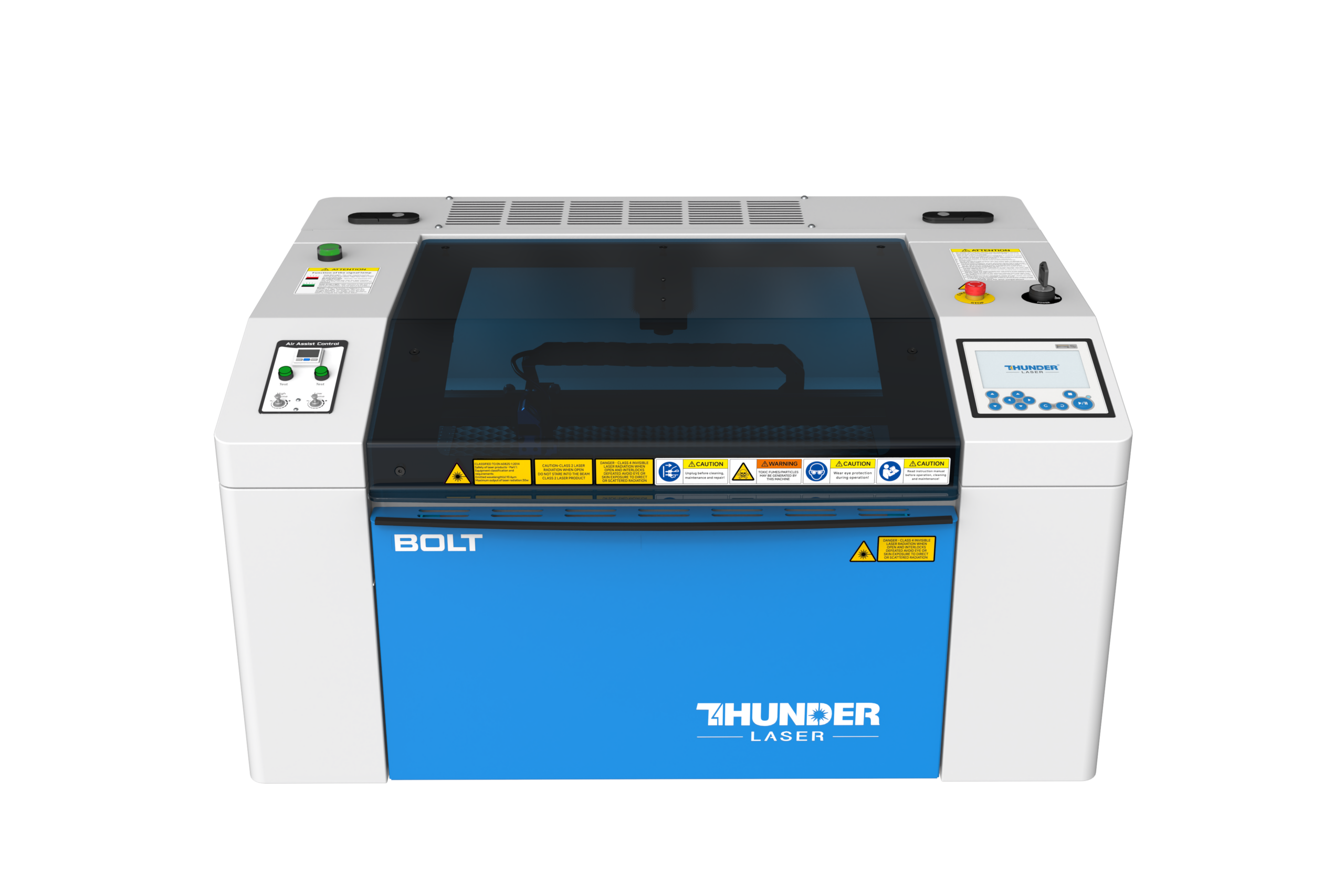 THUNDER LASER – Série BOLT – Machines de découpe & gravure laser CO₂ (RF tube métal) compactes