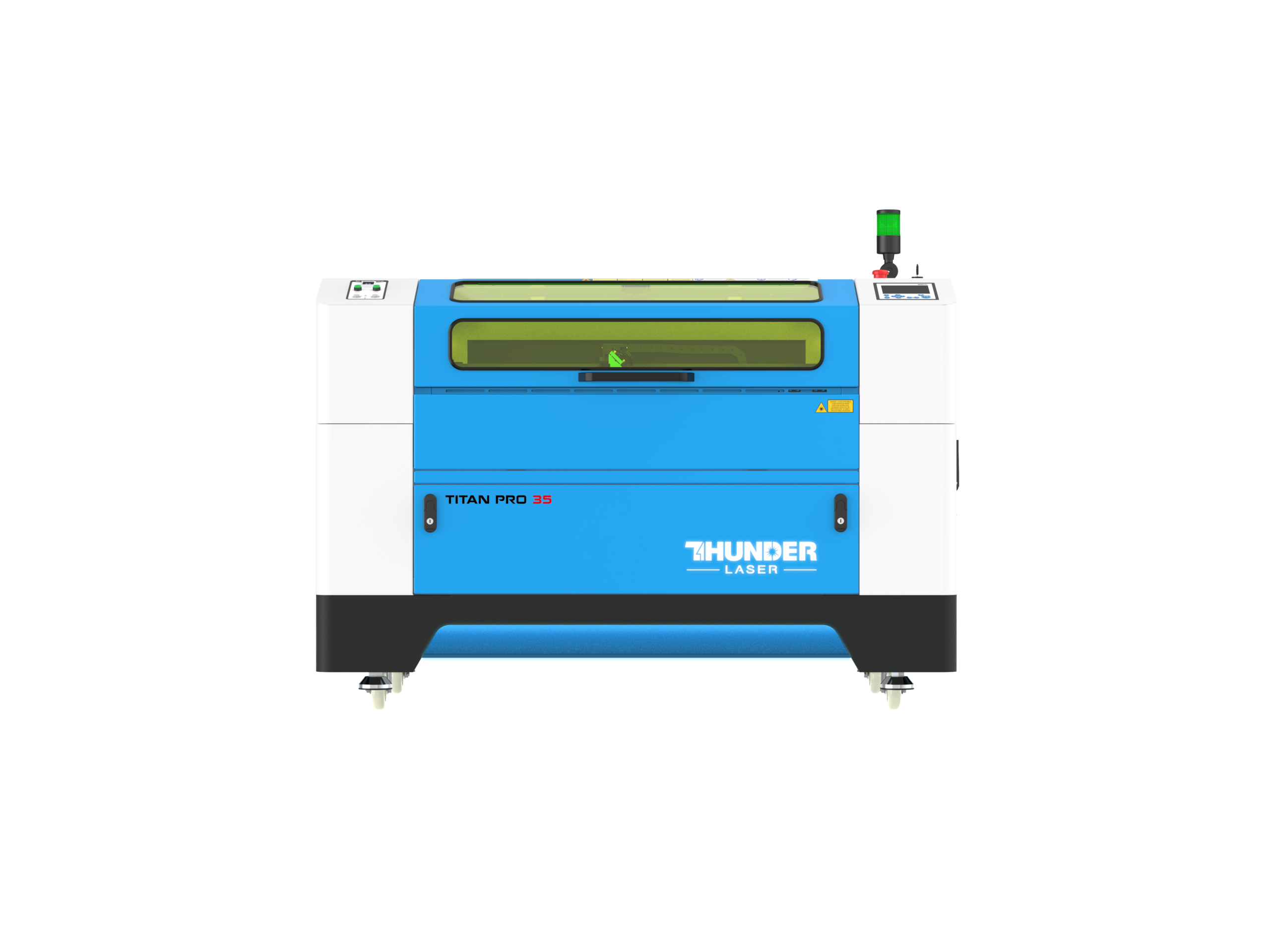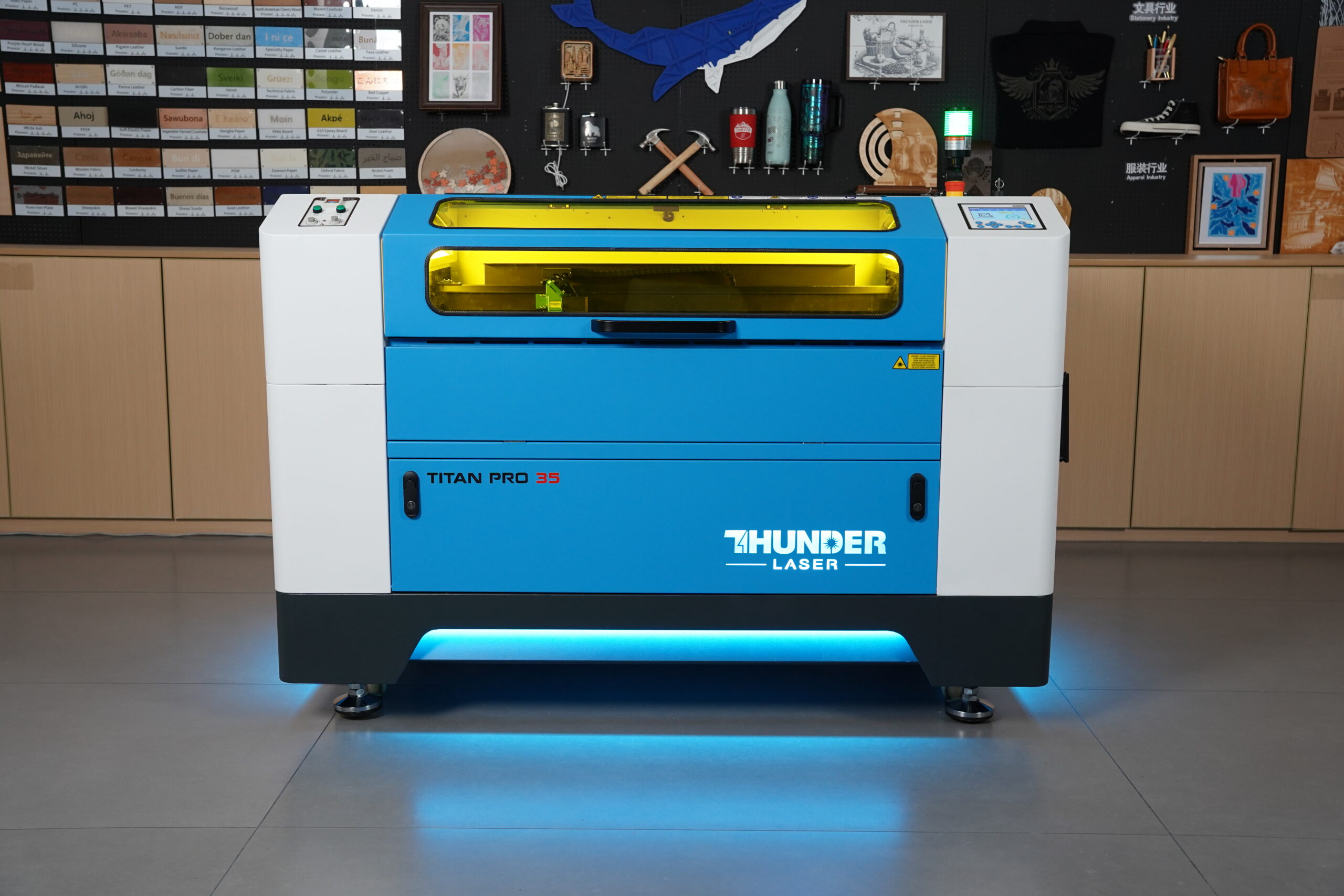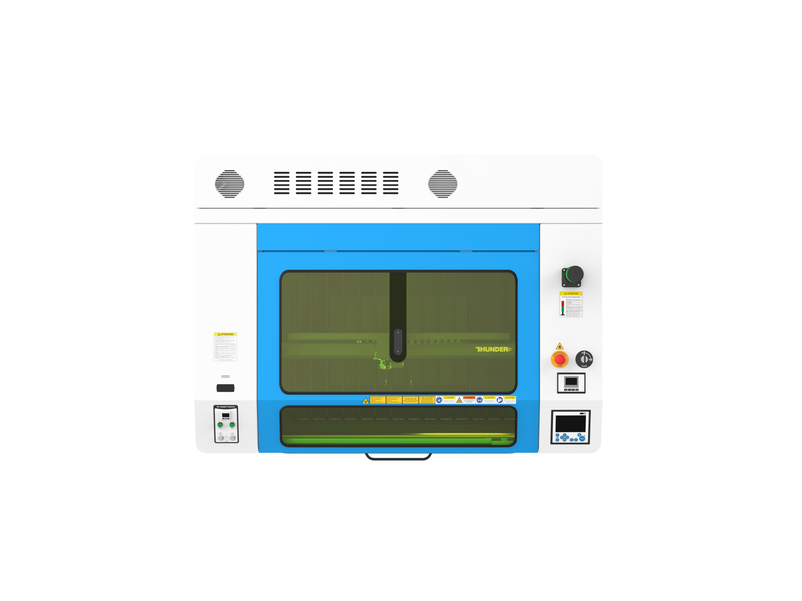 THUNDER LASER – Série TITAN – Machines de découpe & gravure laser hybride (CO₂ RF tube métal + Fibre MOPA sur version PRO) de Classe 1