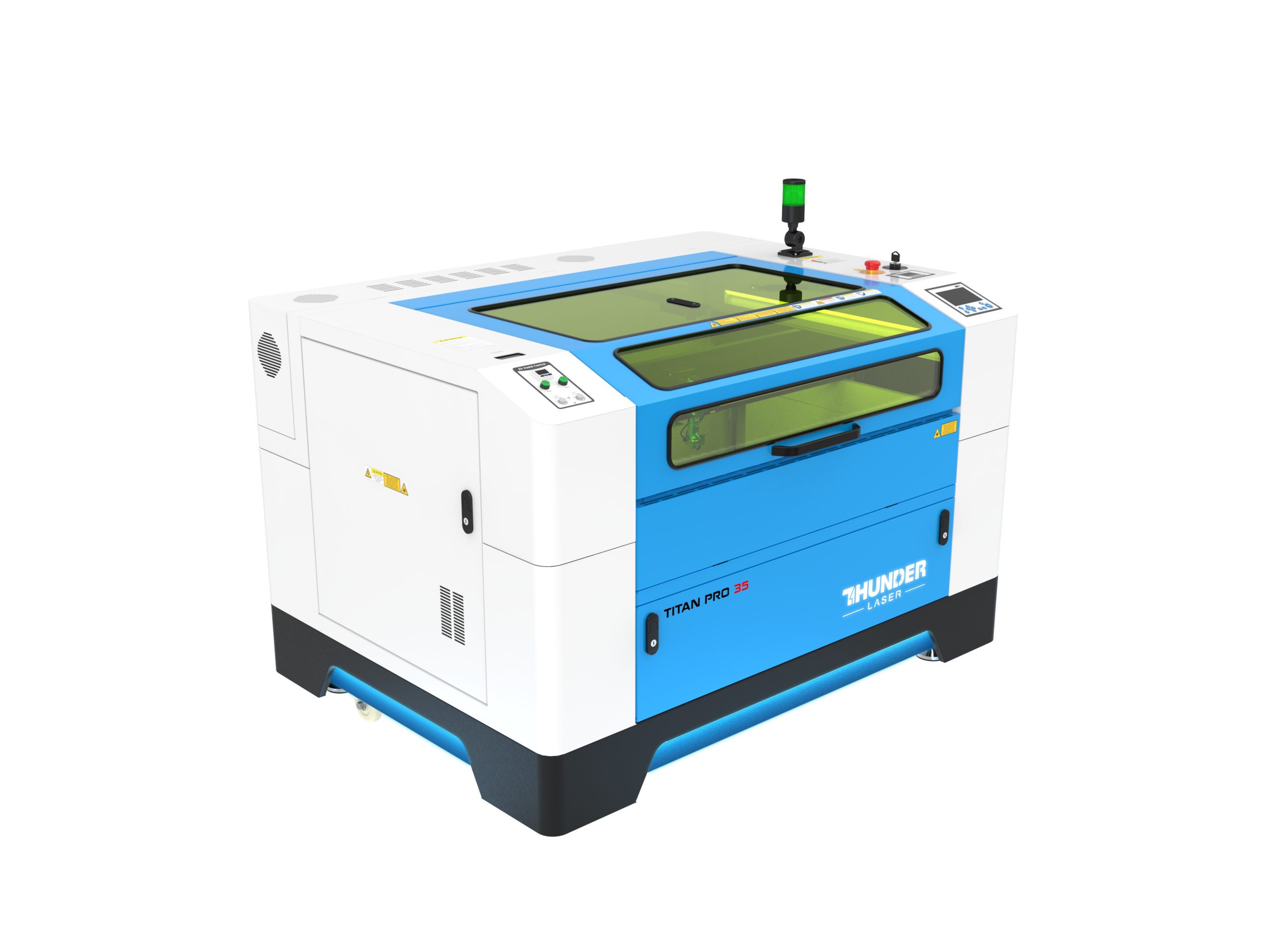 - TITAN PRO (CO₂ RF + Fibre MOPA) : combine deux technologies dans une même machine – CO₂ pour la découpe/gravure des non-métaux, et Fibre MOPA pour des applications de marquage / gravure adaptées à la longueur d’onde 1064 nm.